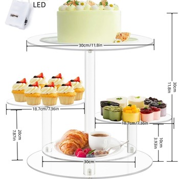 ชั้นวางเค้กอะคริลิคใสหลายชั้นสำหรับโชว์ขนมสุดหรูถอดง่ายสำหรับงานปาร์ตี้รับปริญญาของขวัญที่ยอดเยี่ยม